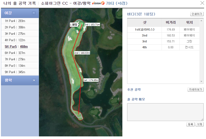 소피아그린에서 최근 두 번 연속 싱글(코스는 다른 코스)인데